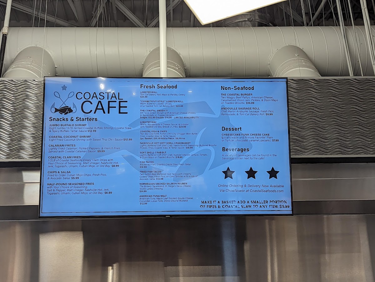 The café at Coastal Seafoods is not to be missed. Grab a seat — whether indoors or on the patio — and indulge in delightful shares like the acclaimed Nashville Hot style sandwich or a fresh serving of clam strips, a favorite among long-time customers like Julie Bash. The casual dining setup, where you order at different counters depending on your beverage choice or food selection, adds to the unique experience of enjoying your seafood amidst the bustling atmosphere of a local market.